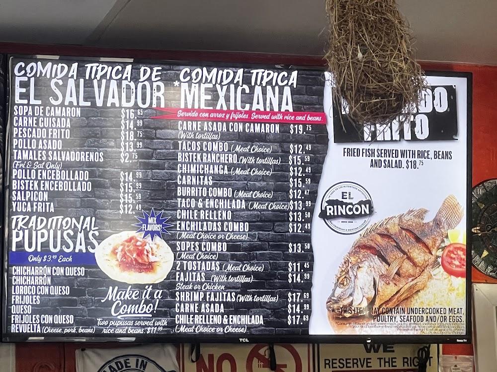 El Rincon offers a diverse menu featuring over 100 dishes. The breakfast section showcases huevos rancheros and burritos, providing hearty options to start the day. Appetizers like yuca frita pair well with the house specials, including the famed pupusa combo. Diners can indulge in traditional Salvadoran options like tamales and sopa de camarón. Vegetarian-friendly plates and kid's meals ensure everyone's needs are catered to. Seasonal and authentic dishes contribute to a rich culinary experience, making the menu worth exploring.